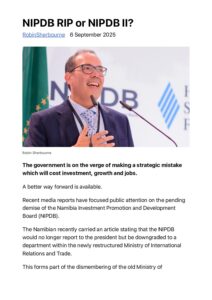 New publications and presentations by Robin Sherbourne / Namibian Economics are listed here as they are released. A complete listing is available in the searchable archives of our publications and our presentations.